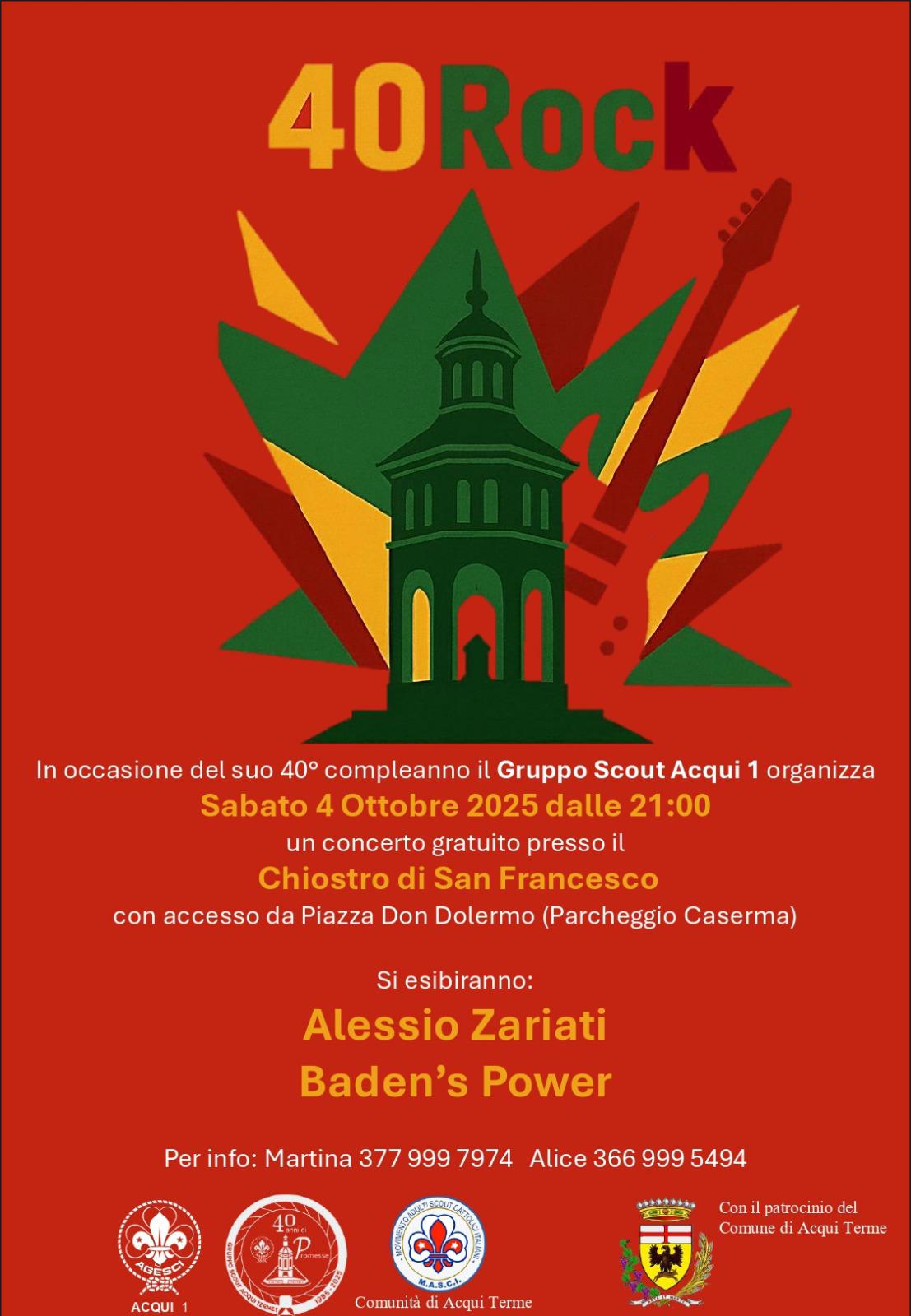 In occasione del suo 40° compleanno il Gruppo scout 1 organizza un concerto gratuito presso il Chiostro di San Francesco Si esibiranno: