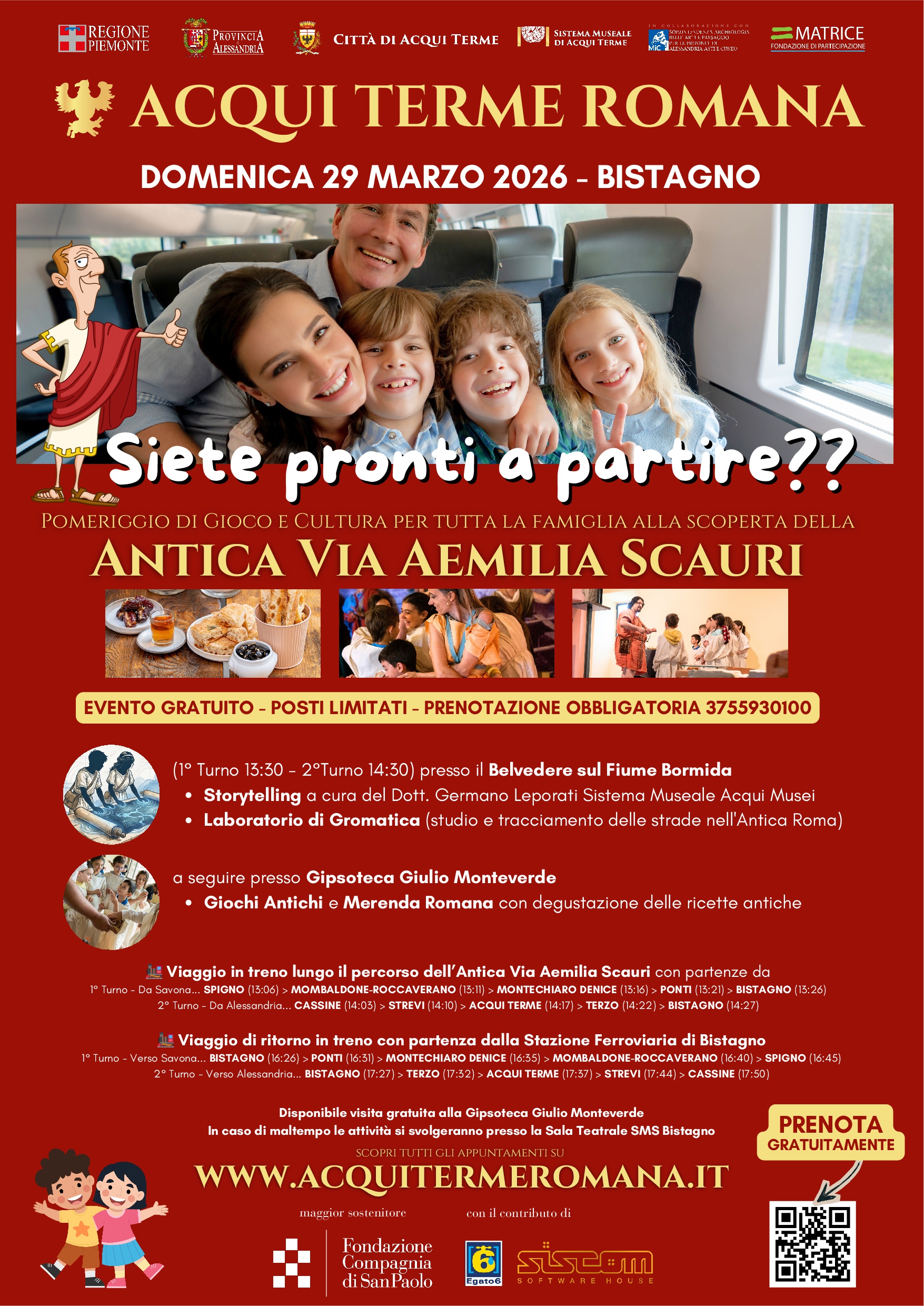 Gita Culturale per tutta la famiglia. Una giornata all’insegna della scoperta dei tesori del territorio acquese. Da Acqui Terme a Bistagno sulla via dell’antica Aemilia Scauri. EVENTO GRATUITO – POSTI LIMITATI – PRENOTAZIONE OBBLIGATORIA 375 5930100