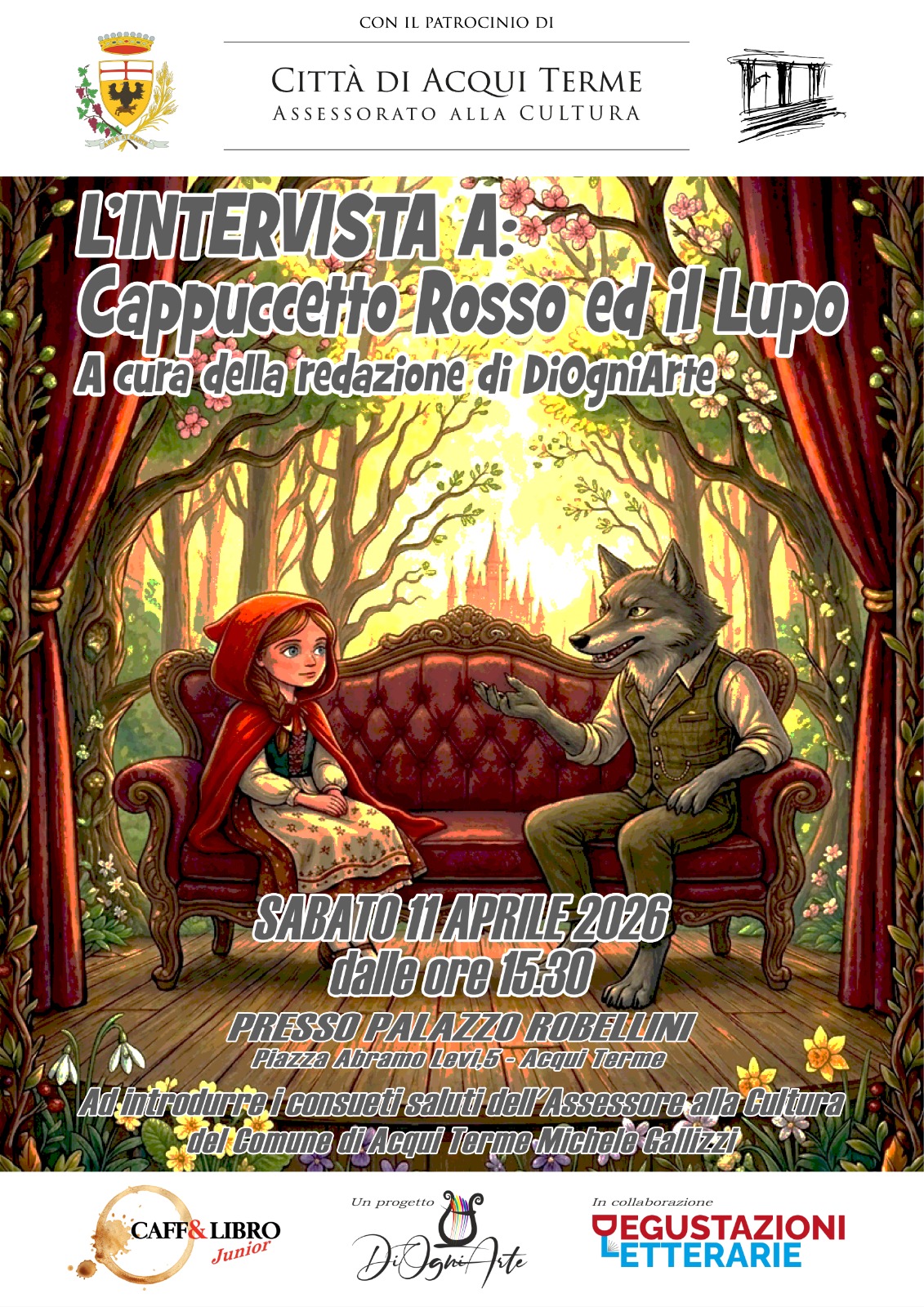 L’intervista a : Cappuccetto Rosso ed il Lupo a cura della redazione DiOgniArte Alle ore 15.30 presso palazzo Robellini, sala convegni.