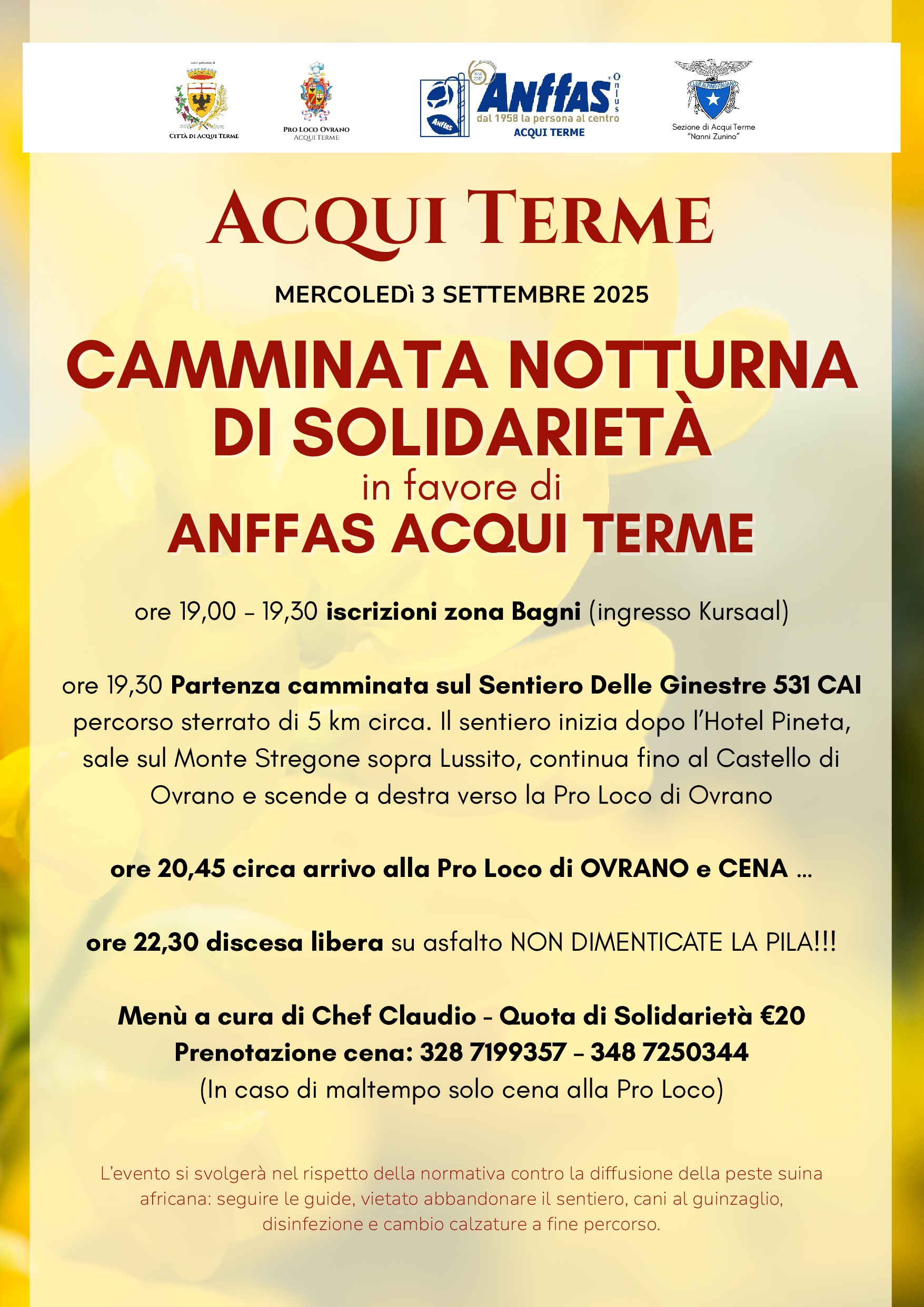 Camminata Notturna di solidarietà in favore di ANFFAS ACQUI TERME