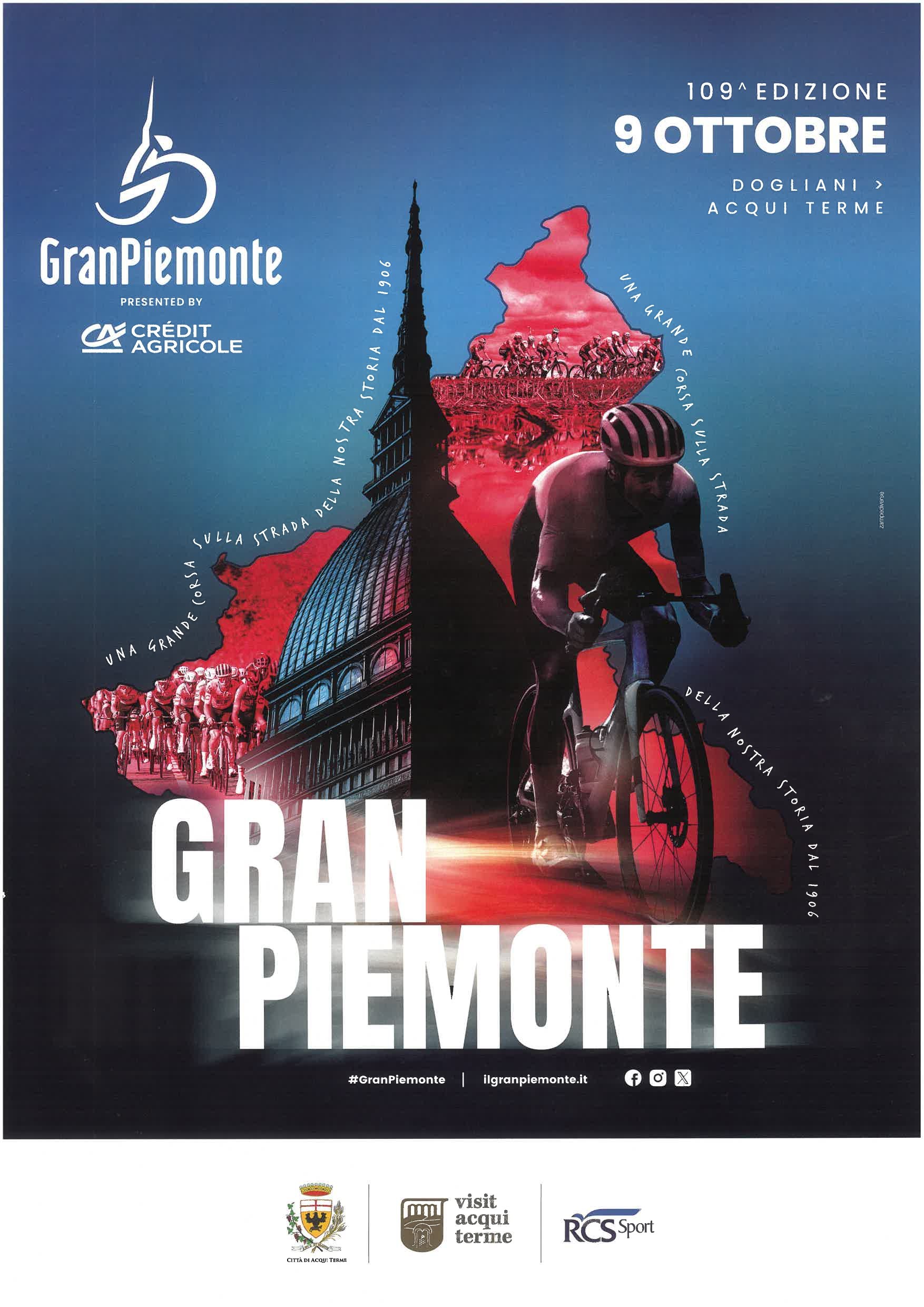 Giovedì 9 ottobre 2025, dalle ore 14:30 alle ore 17:00 circa, si terrà ad Acqui Terme la corsa ciclistica professionistica “Gran Piemonte 2025”.