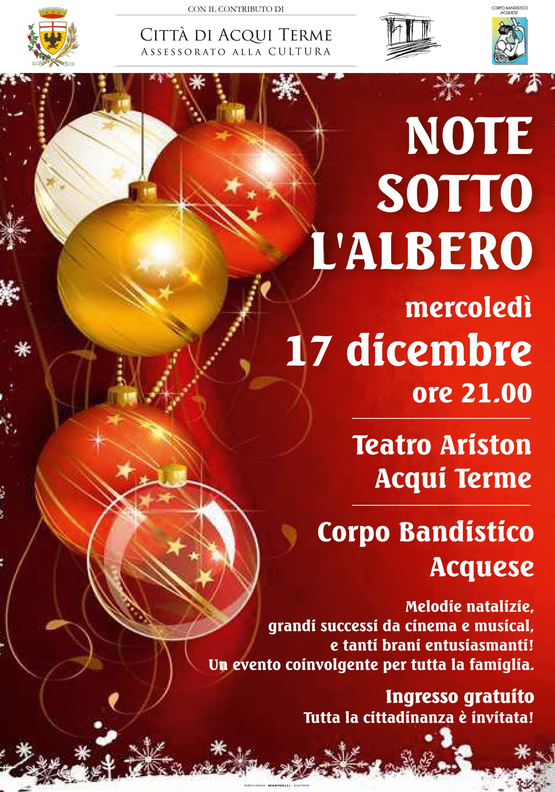 Un’esperienza da assaporare e vivere tra gusto, luci e magia. CONCERTO DI AUGURI “NOTE SOTTO L’ALBERO” – del CORPO BANDISTICO ACQUESE Melodie natalizie, grandi successi da cinema e musical, e tanti brani entusiasmanti! Un evento coinvolgente per tutta la famiglia. INGRESSO GRATUITO – Tutta la cittadinanza è invitata!