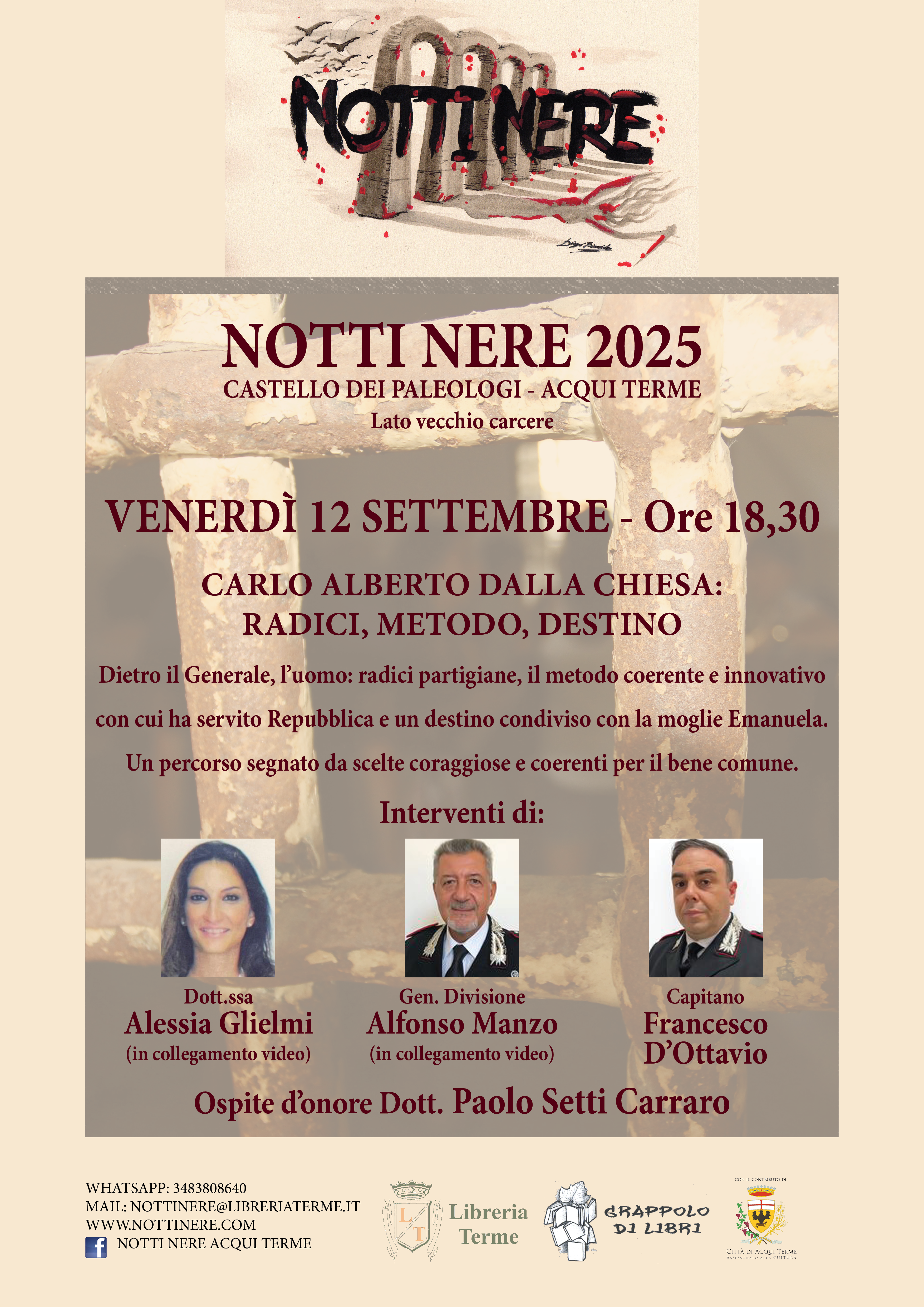 Venerdì 12 alle ore 18.30 CARLO ALBERTO DALLA CHIESA: RADICI, METODO E DESTINO Dietro il Generale, l’uomo: radici partigiane, il metodo coerente e innovativo con cui ha servito Repubblica e un destino condiviso con la moglie Emanuela. Un percorso segnato da scelte coraggiose e coerenti per il bene comune.