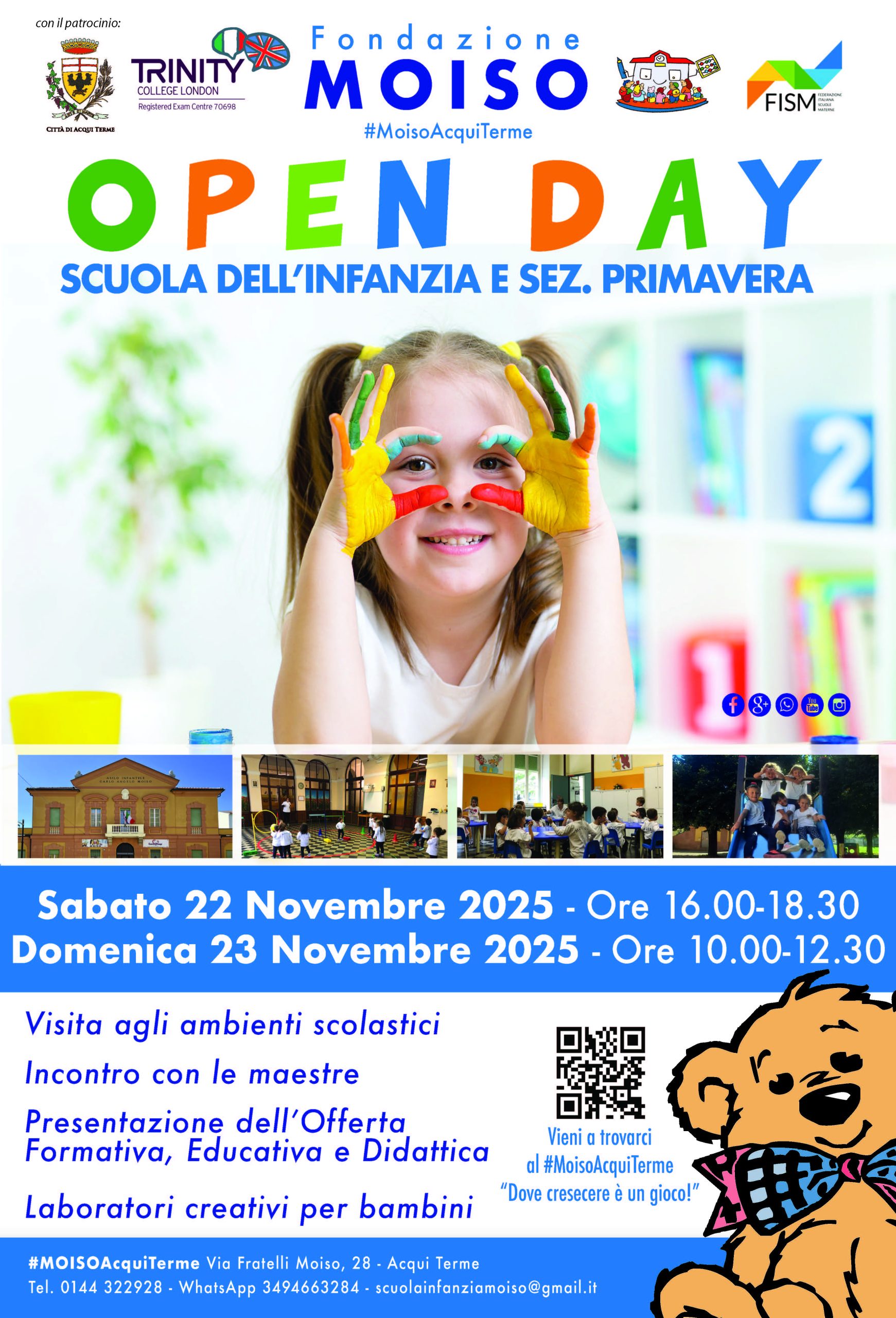 Open Day – visita agli ambienti scolastici; Incontro con le maestre; presentazione dell’offerta formativa, educativa e didattica; laboratori creativi per bambini; Sabato dalle 16:00-18:30; Domenica dalle 10.00-12.30