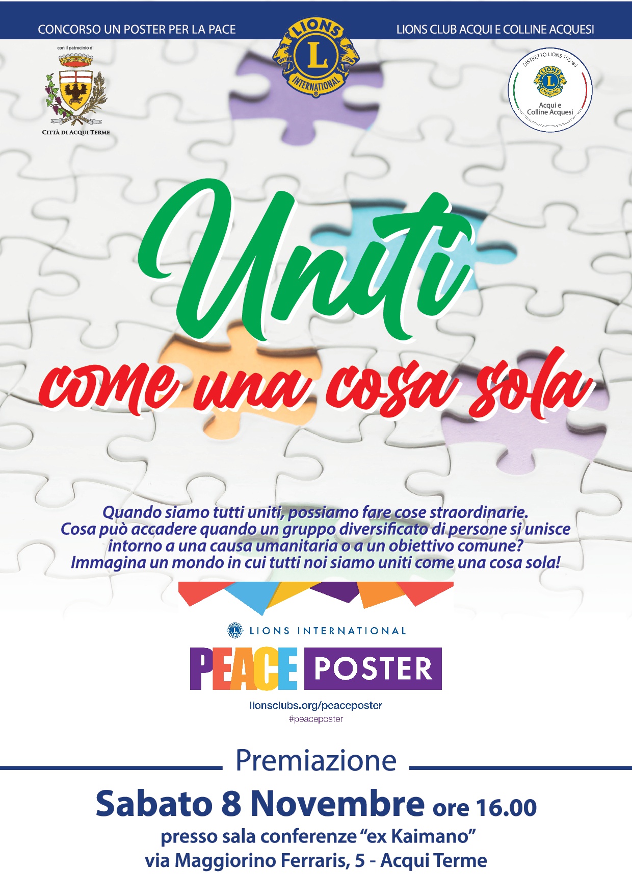→ « Tutti gli Eventi POSTER PER LA PACE Novembre 8 @ 16:00 – 18:00 UNITI COME UNA COSA SOLA Premiazione alle ore 16.00 presso la Sala ex-Kaimano Aggiungi a Google Calendar Aggiungi a iCalendar Dettagli Data: Novembre 8 Ora: 16:00 – 18:00 Sala convegni ex Kaimano Via M. Ferraris,5 Acqui Terme, Alessandria 15011 Italy + Google Maps Questo contenuto è disponibile in: Questo contenuto è disponibile in: