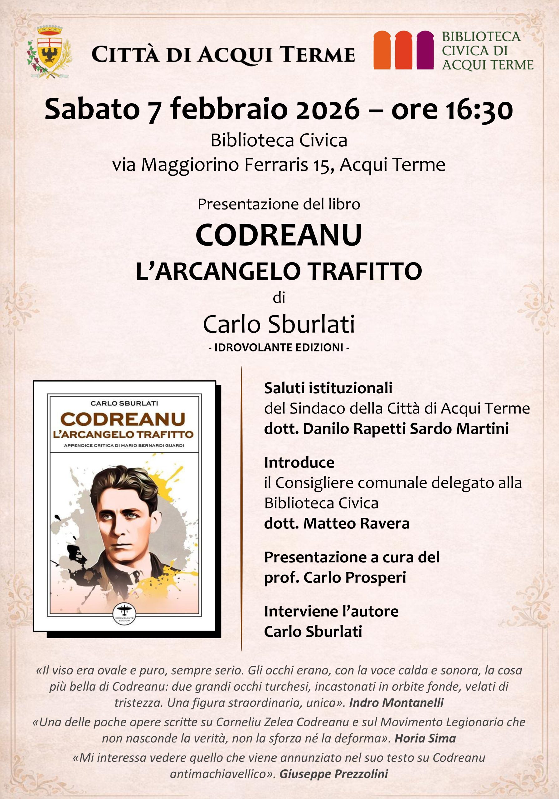 Presentazione del libro “CODREANU – L’Arcangelo trafitto” di Carlo Sburlati. Idrovolante Edizioni