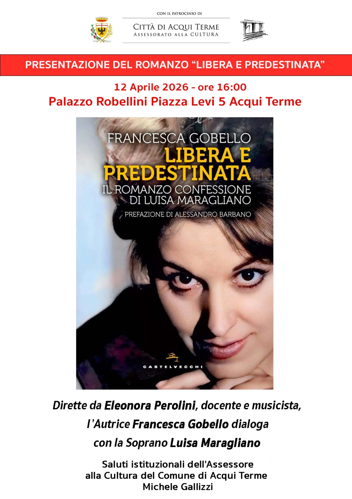Presentazione del libro di Francesca Gobello “Libera e predestinata” – il romanzo confessione di Luisa Maragliano. Dirette da Eleonora Perolini, docente e musicista. L’Autrice Francesca Gobello dialoga con la Soprano Luisa Maragliano.