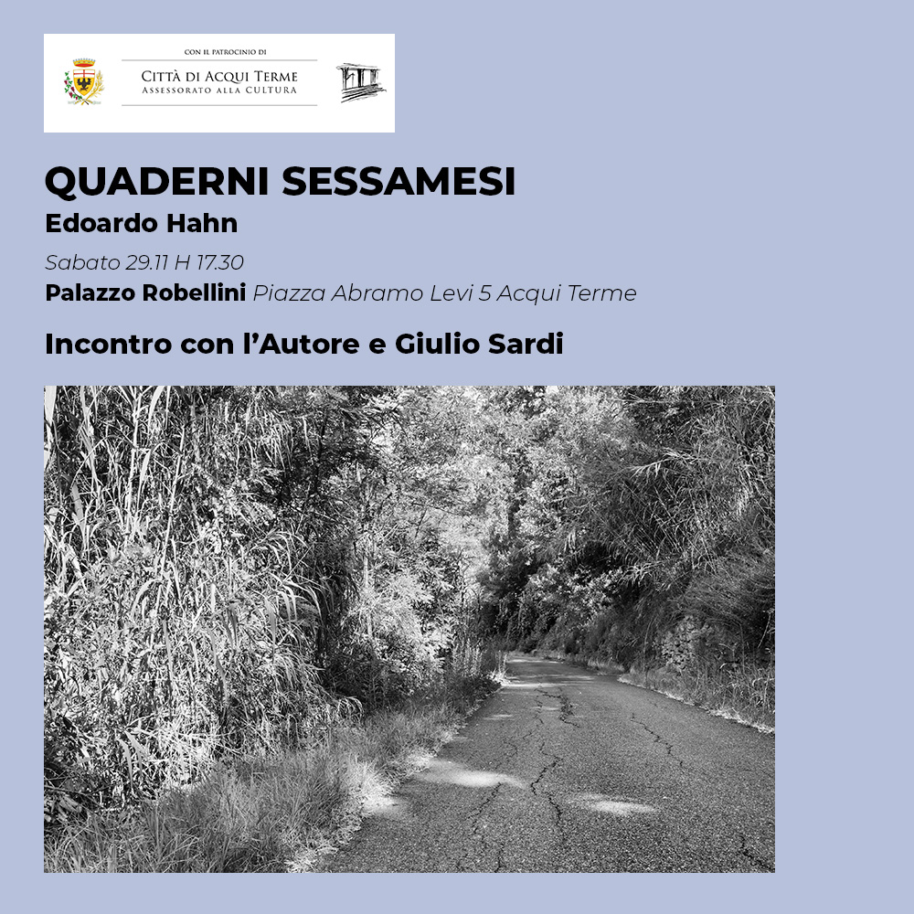 → « Tutti gli Eventi QUADERNI SESSAMESI Novembre 29 @ 17:30 – 19:00 Incontro con l’Autore Edoardo Hahn e con il giornalista dell’Ancora Giulio Sardi. Aggiungi a Google Calendar Aggiungi a iCalendar Dettagli Data: Novembre 29 Ora: 17:30 – 19:00 Categorie Evento: presentazione libri, Arte e Cultura Palazzo Robellini Piazza Levi Acqui Terme, 15011 Italy + Google Maps Related Events UN CALICE CON LO SCRITTORE – Presentazione volume “I morti stanno bene. Sei anni dopo” di Giuliana Balzano Novembre 14 @ 17:30 – 19:30 UN CALICE CON LO SCRITTORE Dicembre 11 @ 18:00 – 20:00 Questo contenuto è disponibile in: Questo contenuto è disponibile in: