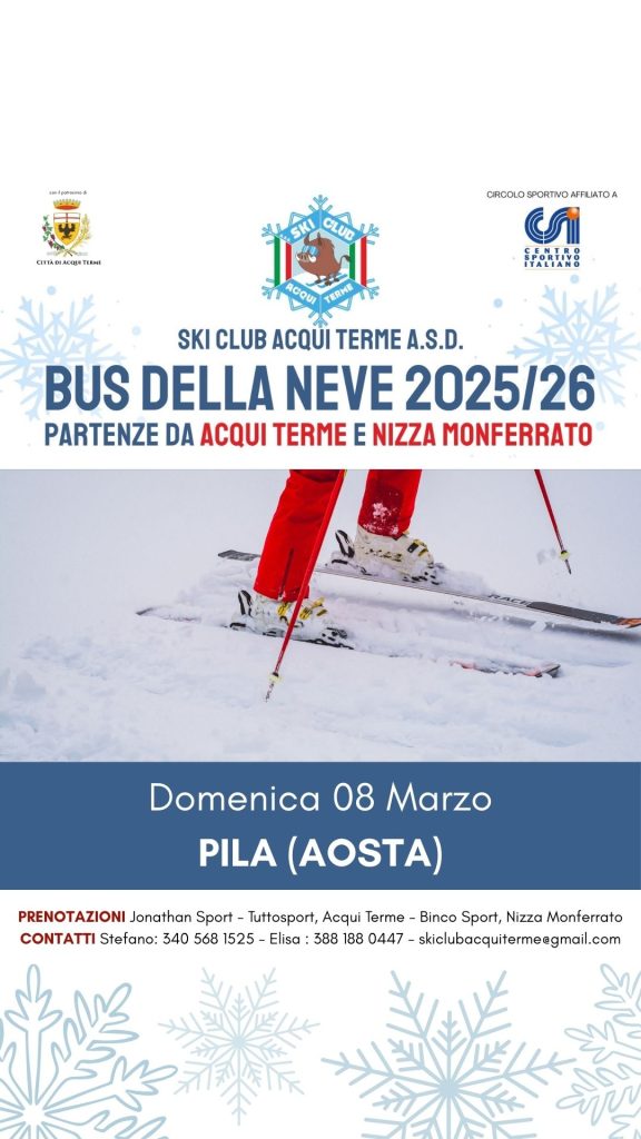 SKI CLUB ACQUI TERME A.S.D. – PARTENZE DA ACQUI TERME E NIZZA MONFERRATO.