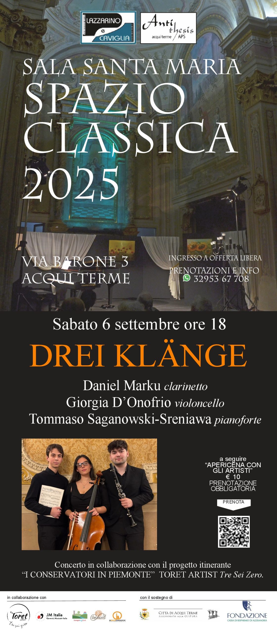 DREI KLANGE Daniel MARKU-clarinetto Giorgia D’ONOFRIO-violoncello Tommaso SAGANOWKI-SPENIAWA-pianoforte Toret Artist 360.
