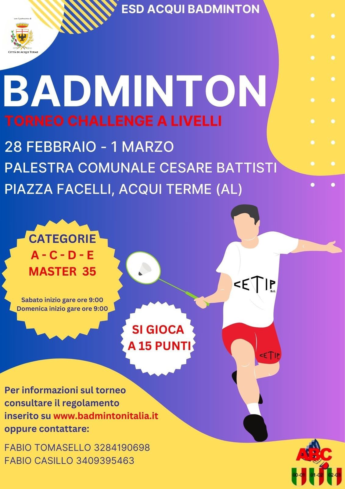 Per informazioni sul torneo consultare il regolamento su www.badmintonitalia.it