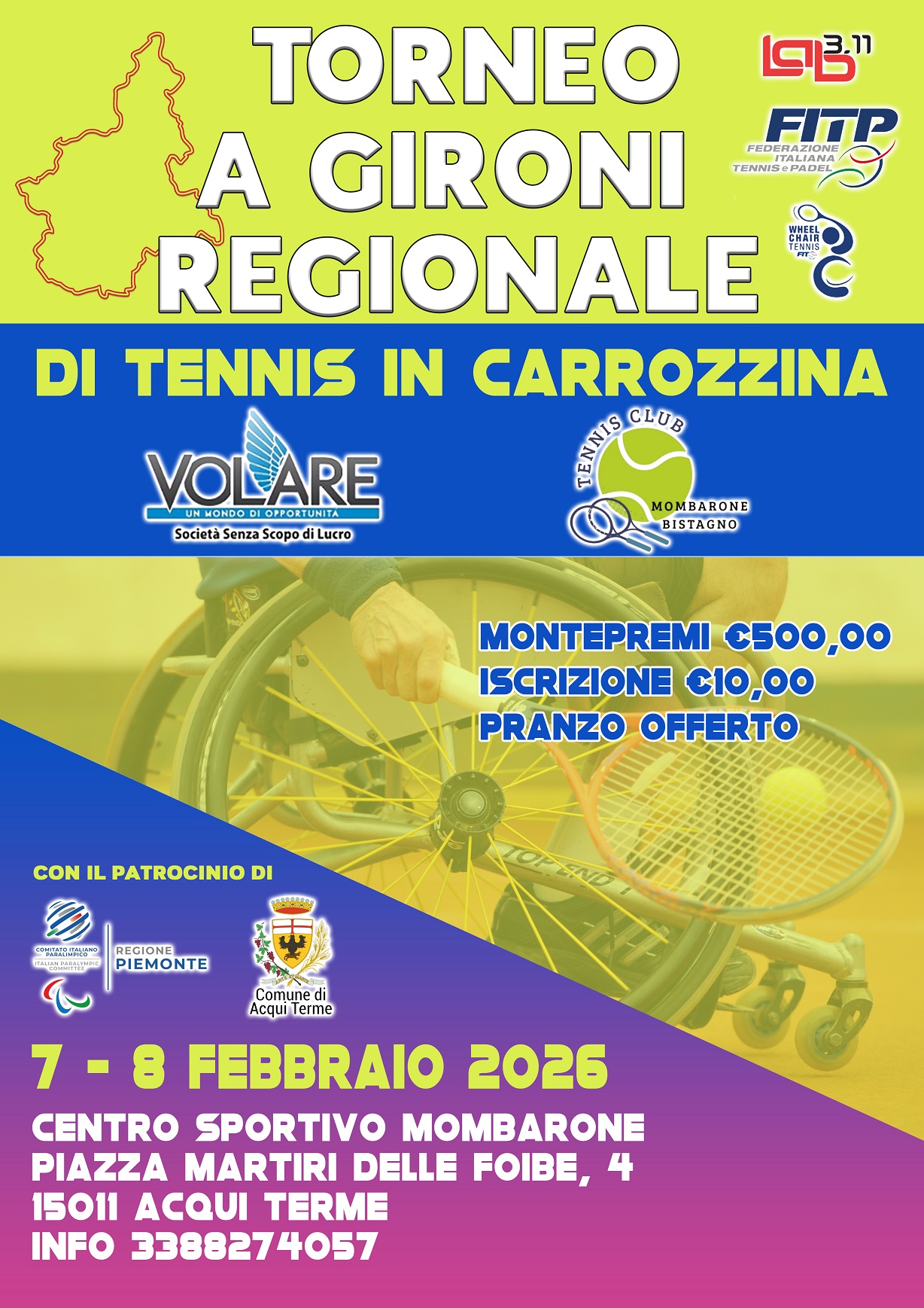 Prende il via il primo torneo agonistico a gironi di tennis in carrozzina del 2026 organizzato da SSD Volare di Alessandria. Iscrizioni aperte sul portale PUC dal vostro My FITP!