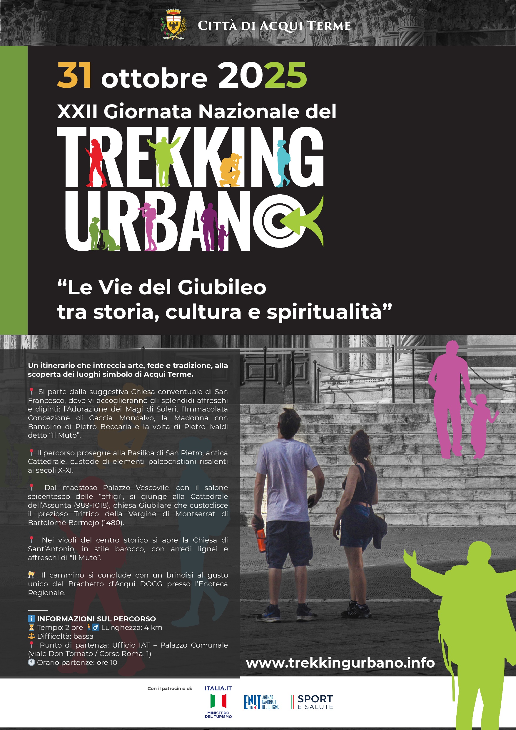 “Le Vie del Giubileo tra storia, cultura e spiritualità” Un itinerario che intreccia arte, fede e tradizione, alla scoperta dei luoghi simbolo di Acqui Terme. Orario di partenza ore 10.00 dall’ufficio IAT, Palazzo Comunale, Corso Roma – viale Don Tornato 1 .